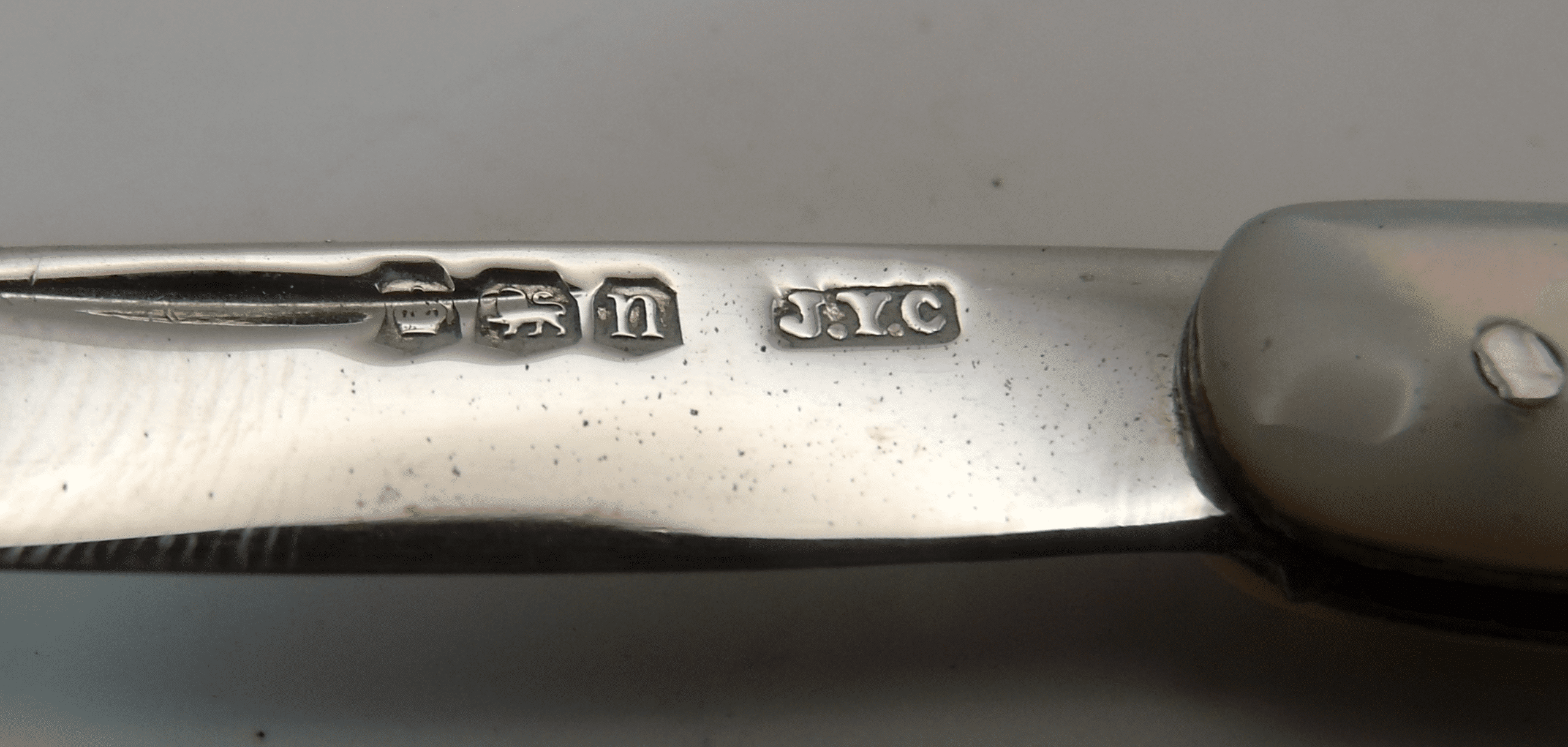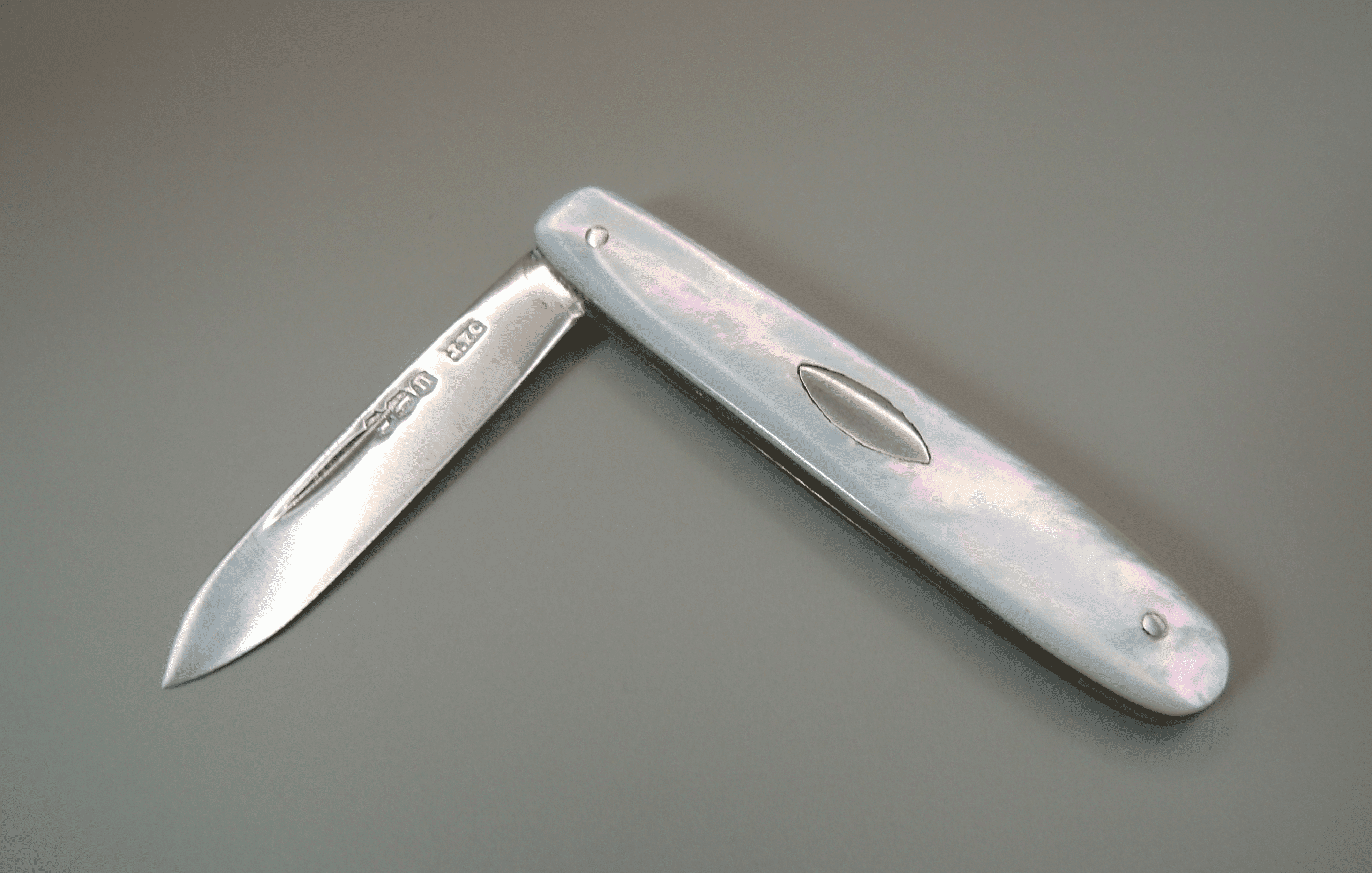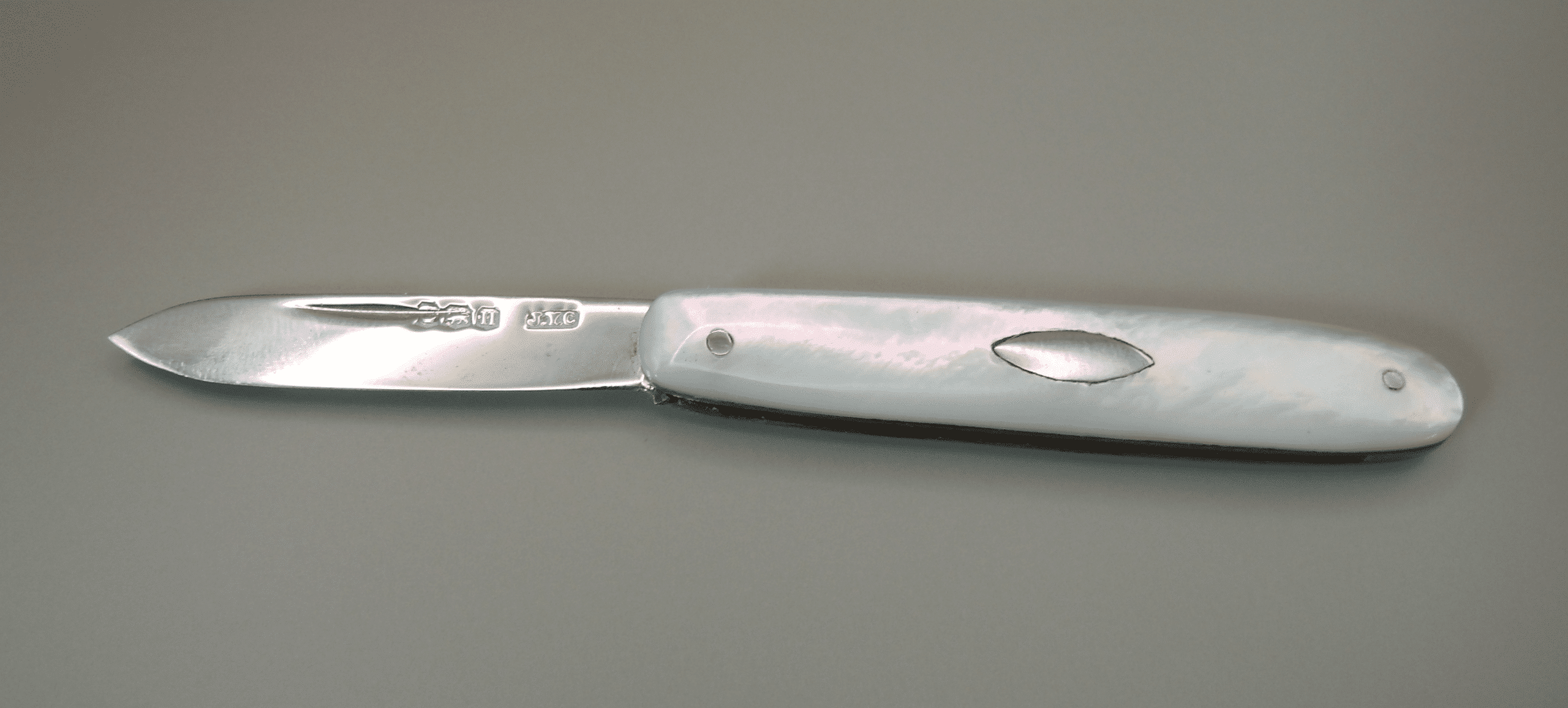 A Silver and Mother of Pearl folding Fruit Knife by John Yeomans Cowlishaw