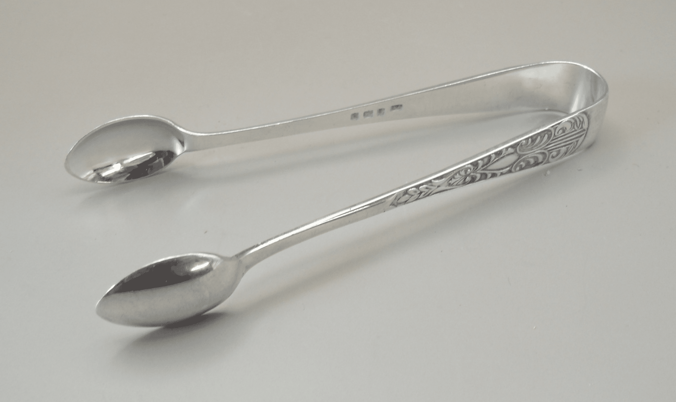 A Set of Sterling Silver Sugar Tongs, made in Birmingham 1913 with a makers mark ‘TW’, probably Thomas Woolley. The tongs measure 11.5cm long and 1.5cm across the bowls. The tongs are in very good condition and weigh 25.1grams.