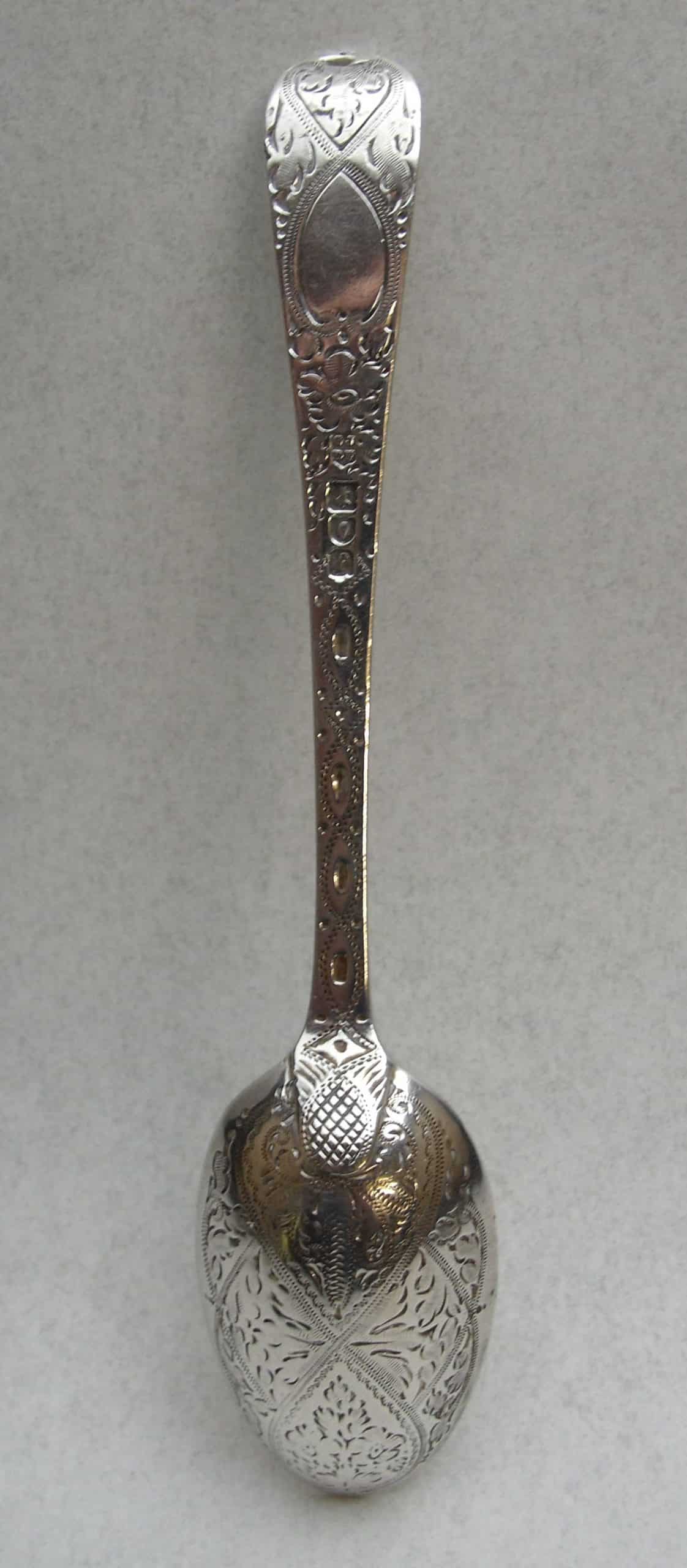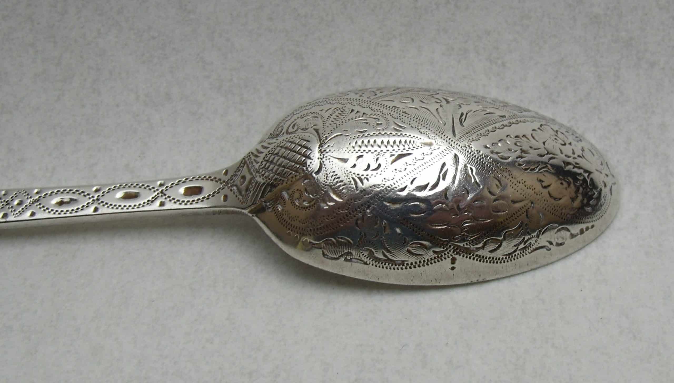 Teaspoon with extensive bright cut decorationSilver Teaspoon with Bright Cut Decoration. London 1901 Josiah Williams