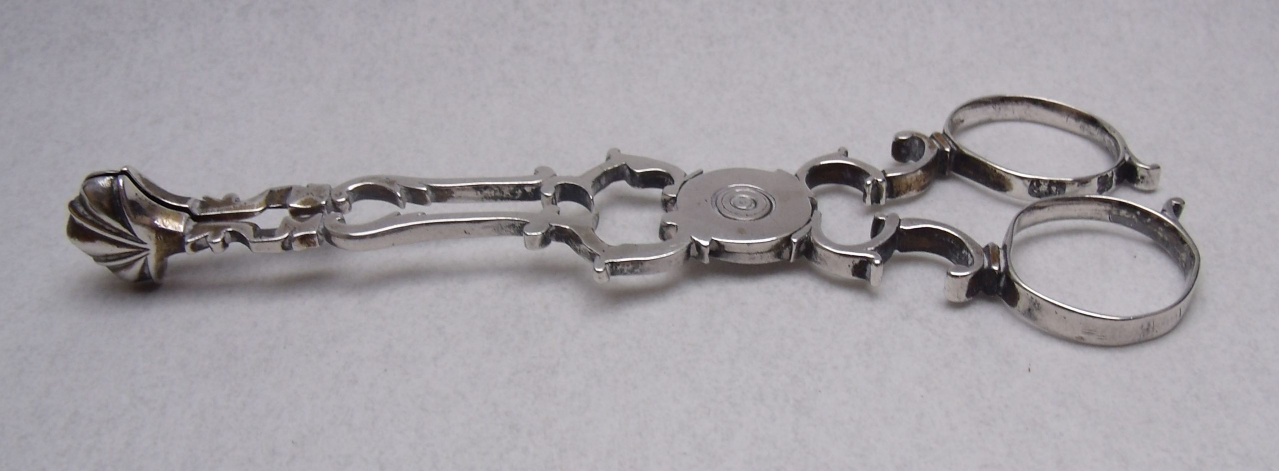 A Set of Tea Tongs by Thomas Hannam & Richard Mills, HM London circa 1763/64 (George III). A nice pair of tea tongs by the London silversmiths Thomas Hannam & Richard Mills. The makers mark for this partnership has been dated to 1760s. There is also an unrecorded variant of these marks which may have been recorded in the lost 1758-1773 Largeworkers’ Register and I’ve not been able to discover how long this partnership lasted. The tongs are in the simplified Rococco style popular in the second half of the 18th cntury, the arms with limited decoration ending in shell bowls. These appear to be in good original condition with no obvious repairs. The tongs measure 13cm and weigh 28.4g.